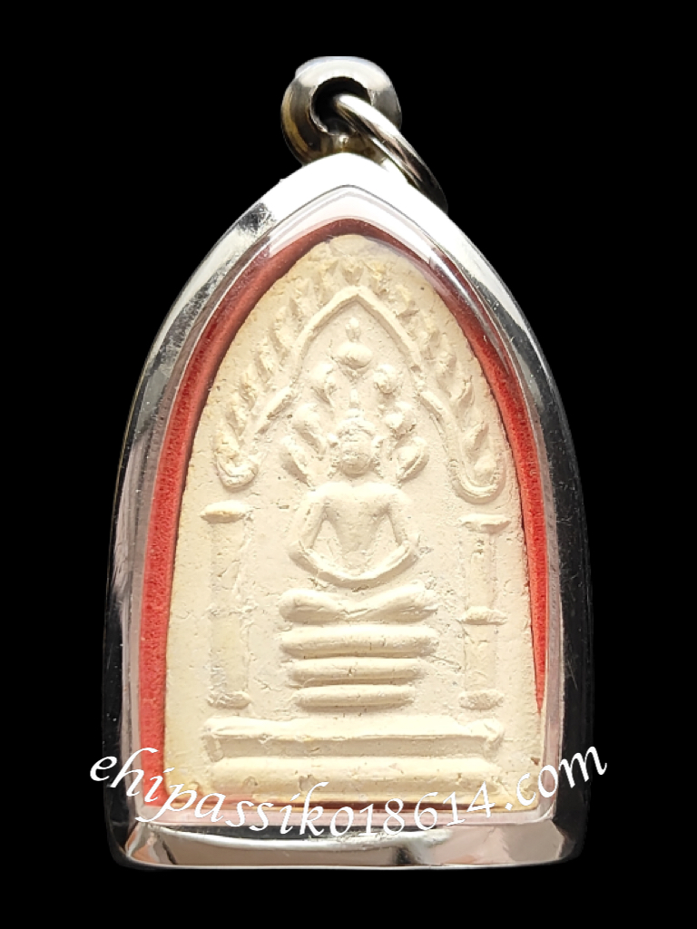 Phra Naprok is a sacred Buddha image in the Naga-protected posture, enshrined at Wat Chansen. The powder-based amulets of Phra Naprok were created in B.E. 2513 (1970) with the intention of being distributed to devotees who came to attend the temple’s Pha Thong Fang Luk Nimit (gold-leaf ceremony and sacred sphere burial). A total of 84,000 amulets were made, with 42,000 being enshrined in the bell tower and Luk Nimit pit. These were meant for future generations to venerate, or in cases where the temple needed funds for restoration, they could be respectfully taken out and made available for worship.