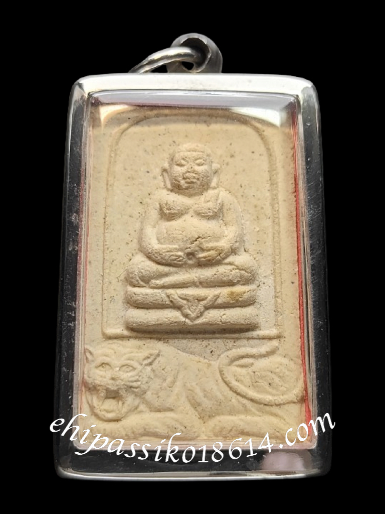 这尊善迦财佛描绘了一个坐在虎上的形象,由龙婆空在佛历2527年于尖竹汶府的旺山普诺寺制作,属于吉祥财富系列。
